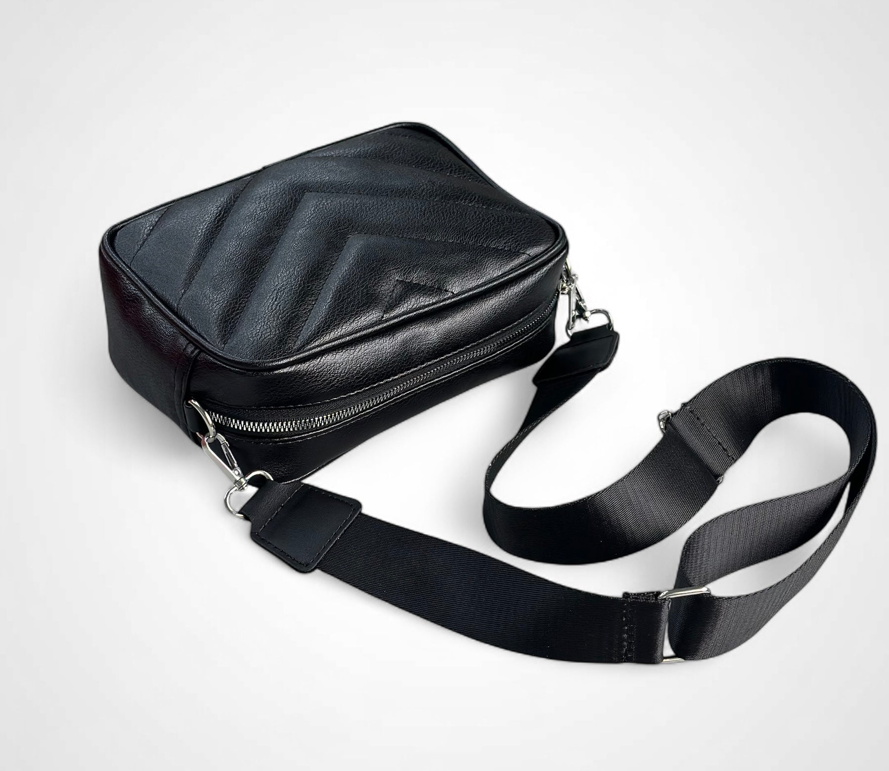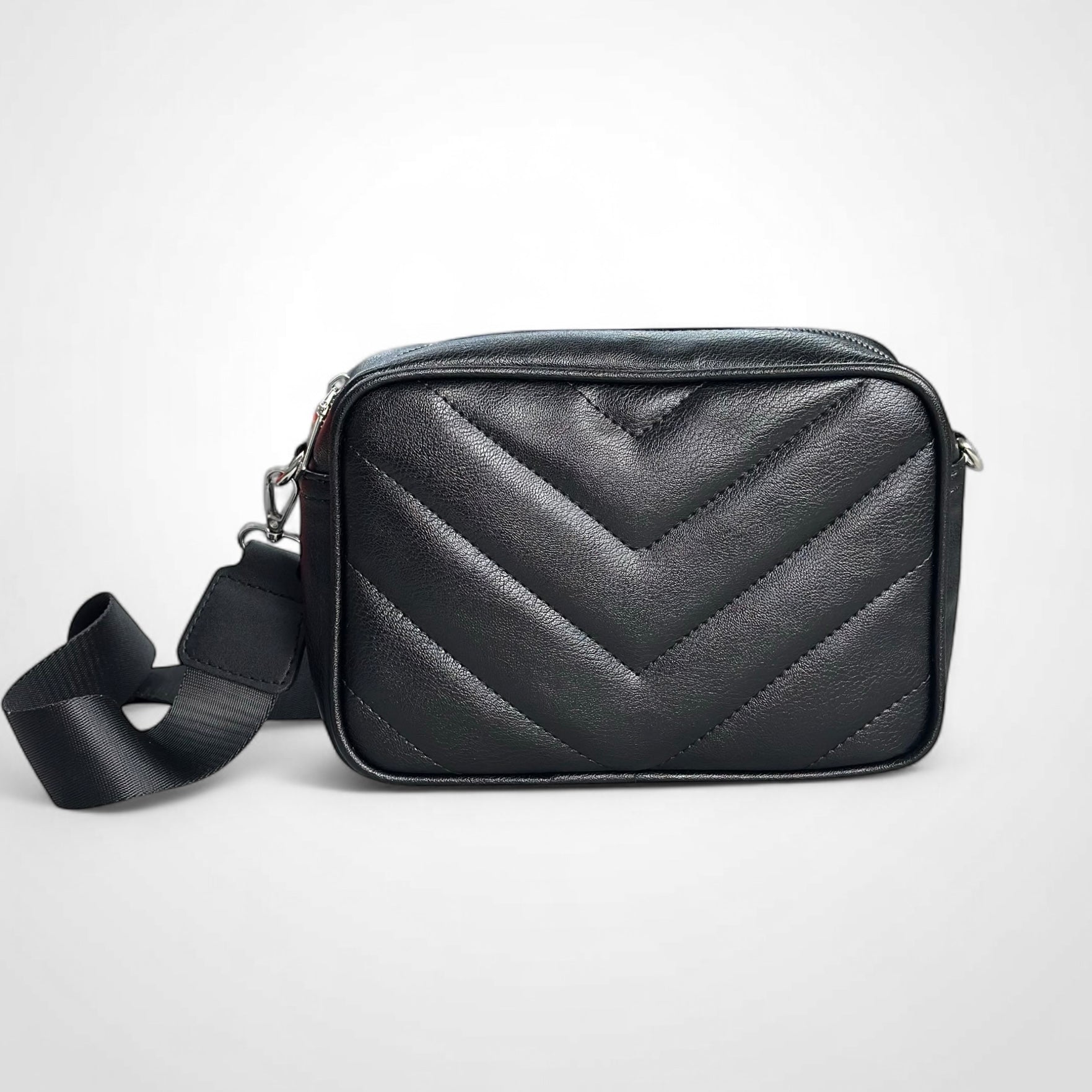 Капитонирана чанта изработена от висококачествена еко кожа с дълга дръжка и аксесоар пискюл.