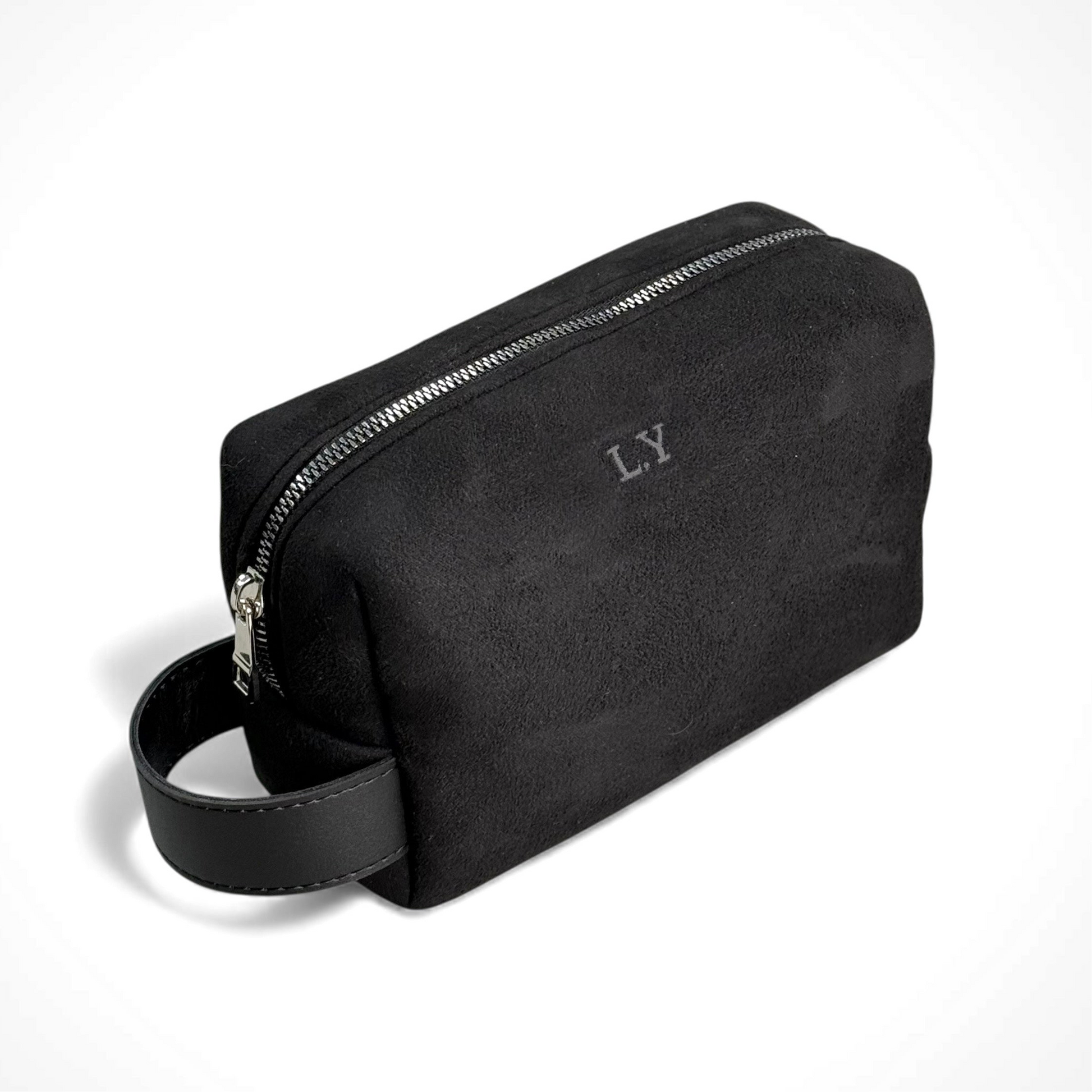 Несесер с вашите инициали изработен от висококачествена алкантара и еко кожа