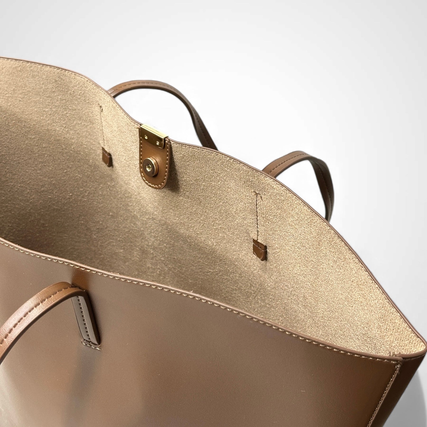 Елегантна и практична дамска чанта от висококачествена еко кожа . Минималистичният дизайн, двойните дръжки и магнитното закопчаване я правят идеална за ежедневието. Просторният интериор побира лаптоп, документи и всички необходими вещи.