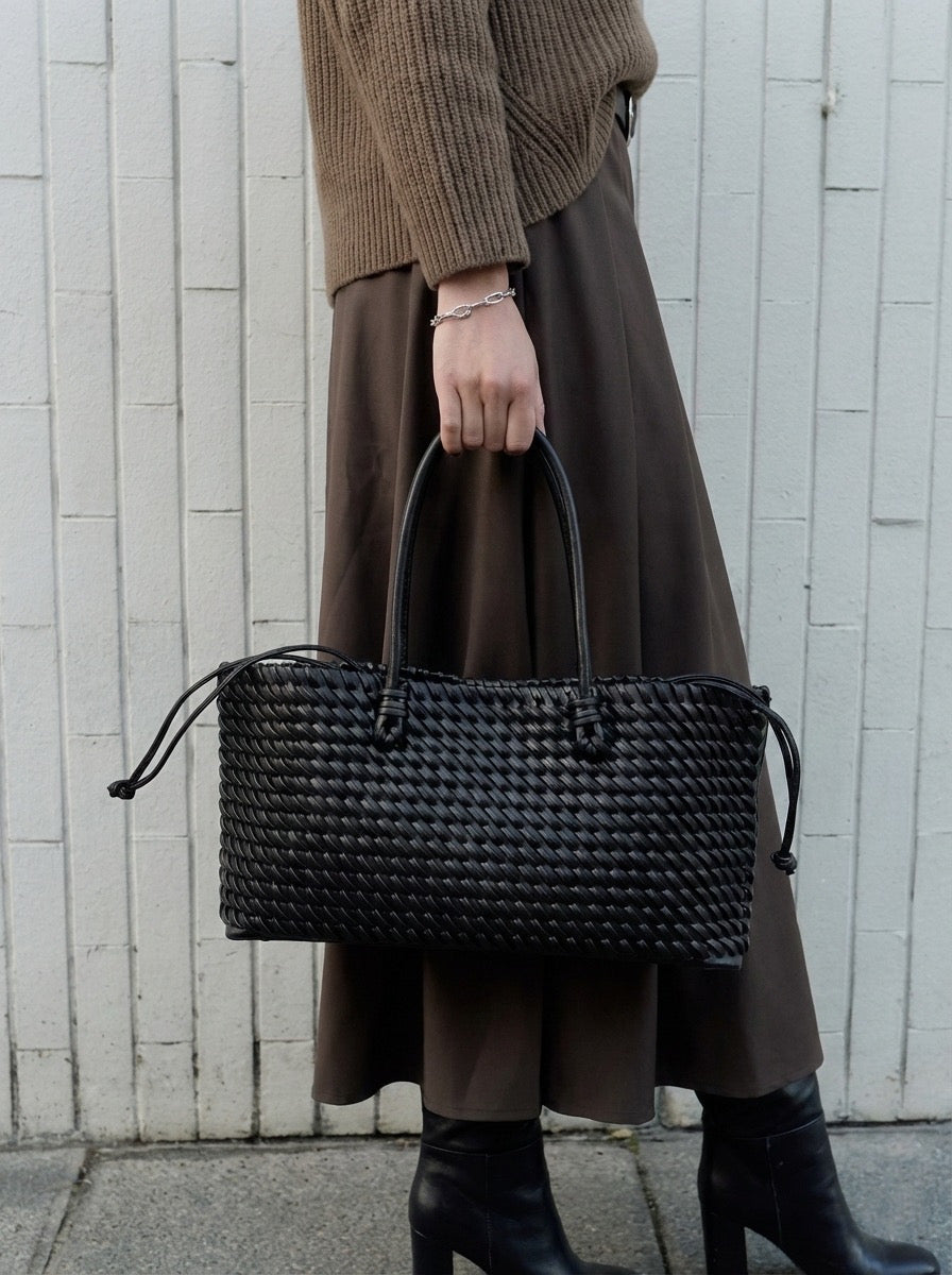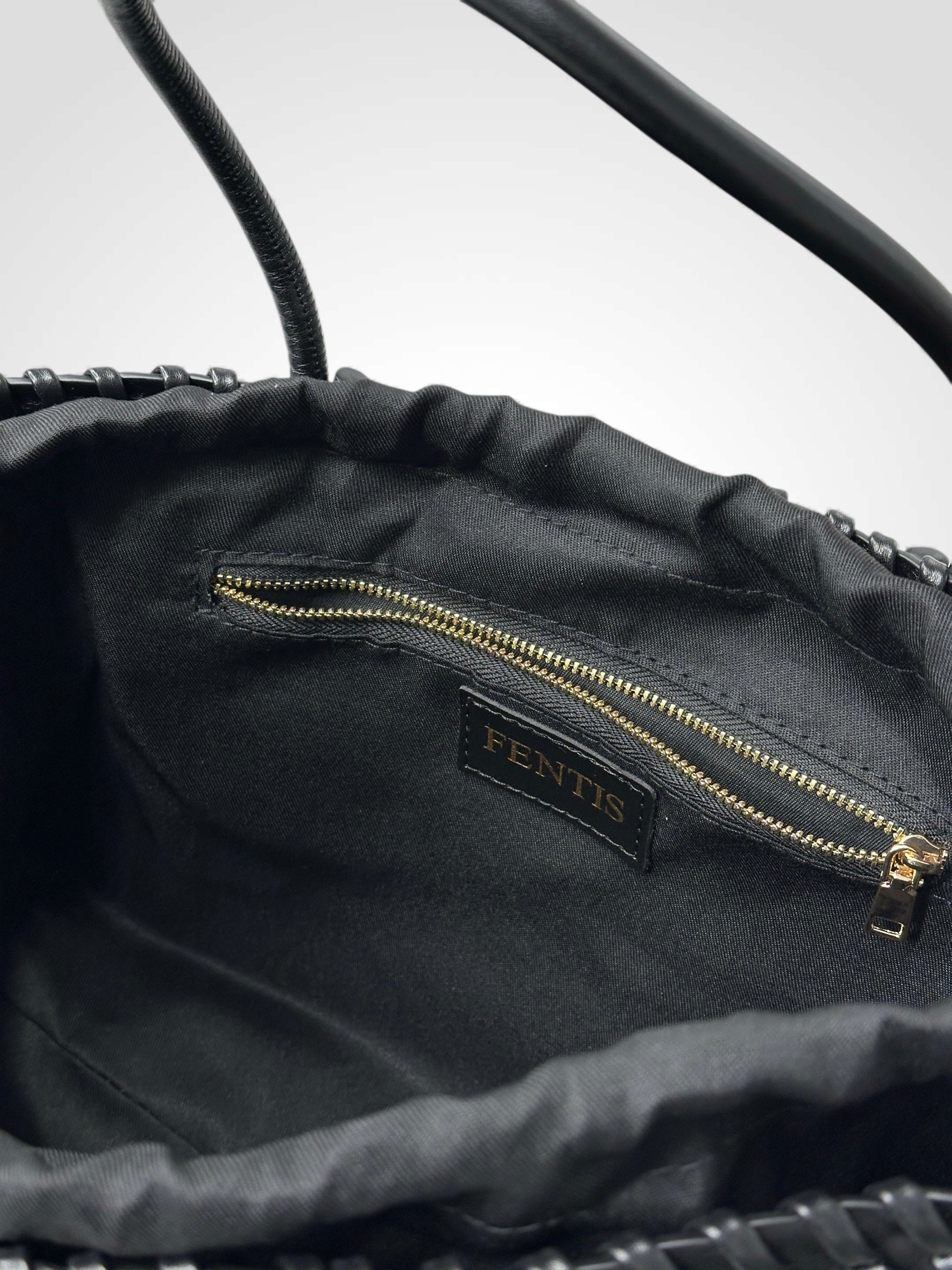 Елегантна и функционална чанта, изработена от висококачествена еко кожа с ръчно изплетен ефект. Меката форма и стилният дизайн я правят подходяща както за ежедневието, така и за по-официални поводи.