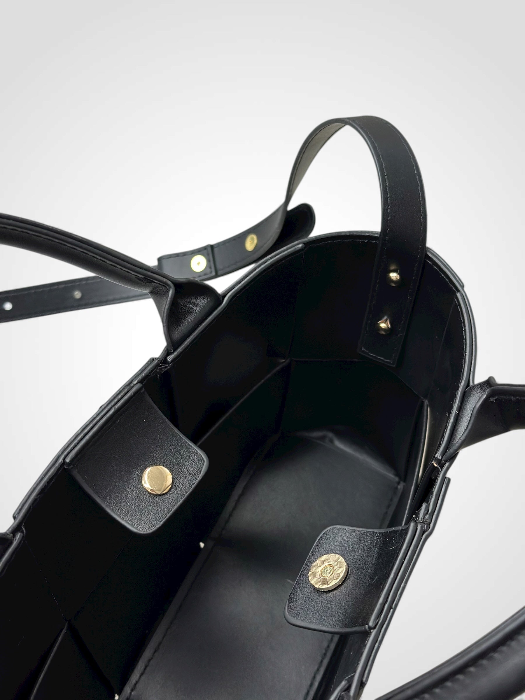 Изработена от висококачествена еко кожа, този модел впечатлява с модерна плетена текстура и семпла визия. Компактният, но удобен дизайн я прави подходяща както за ежедневието, така и за по-елегантни поводи.